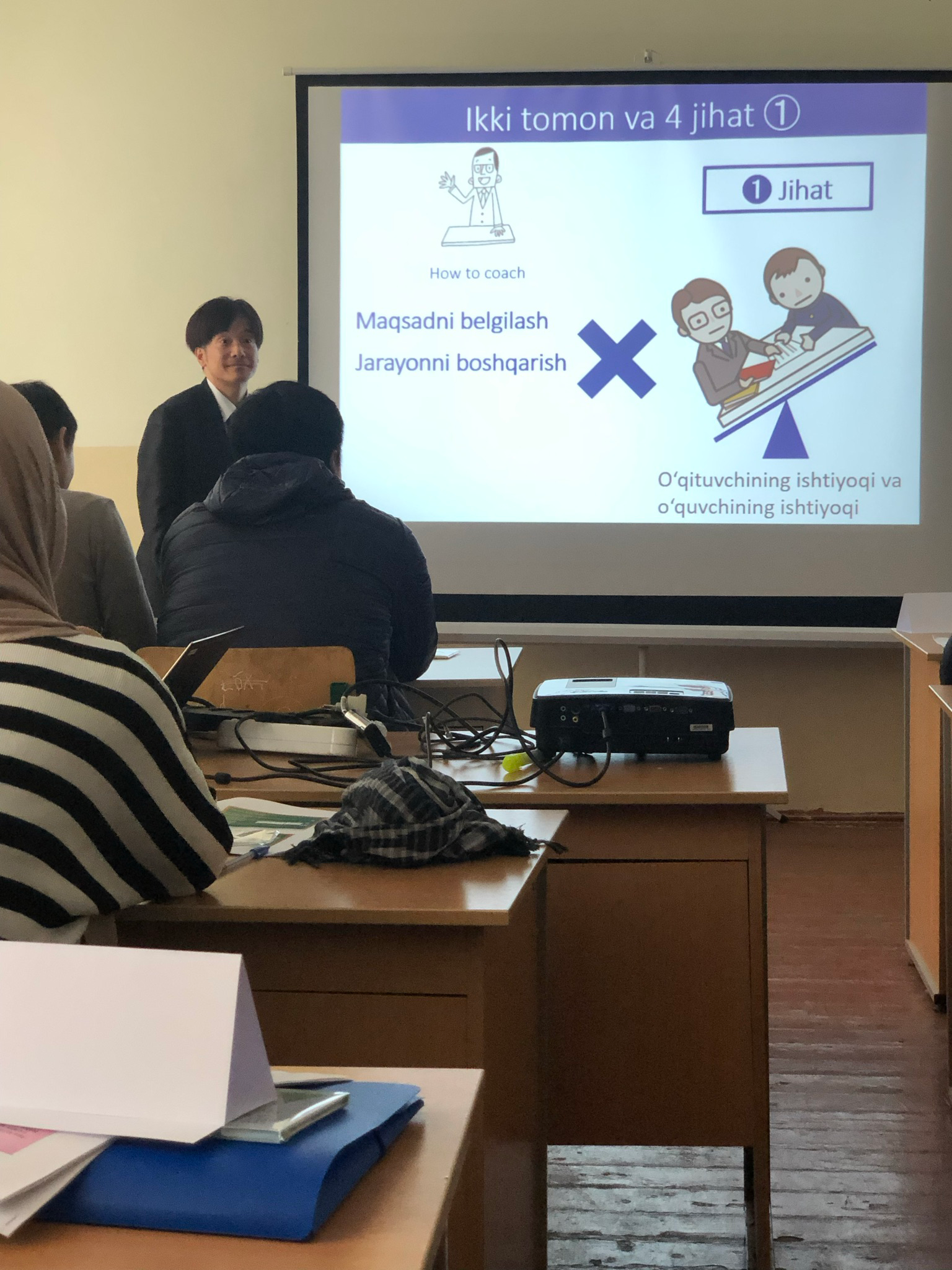 ウズベキスタンでの教育支援活動(※現地大学生に生徒指導の研修)
